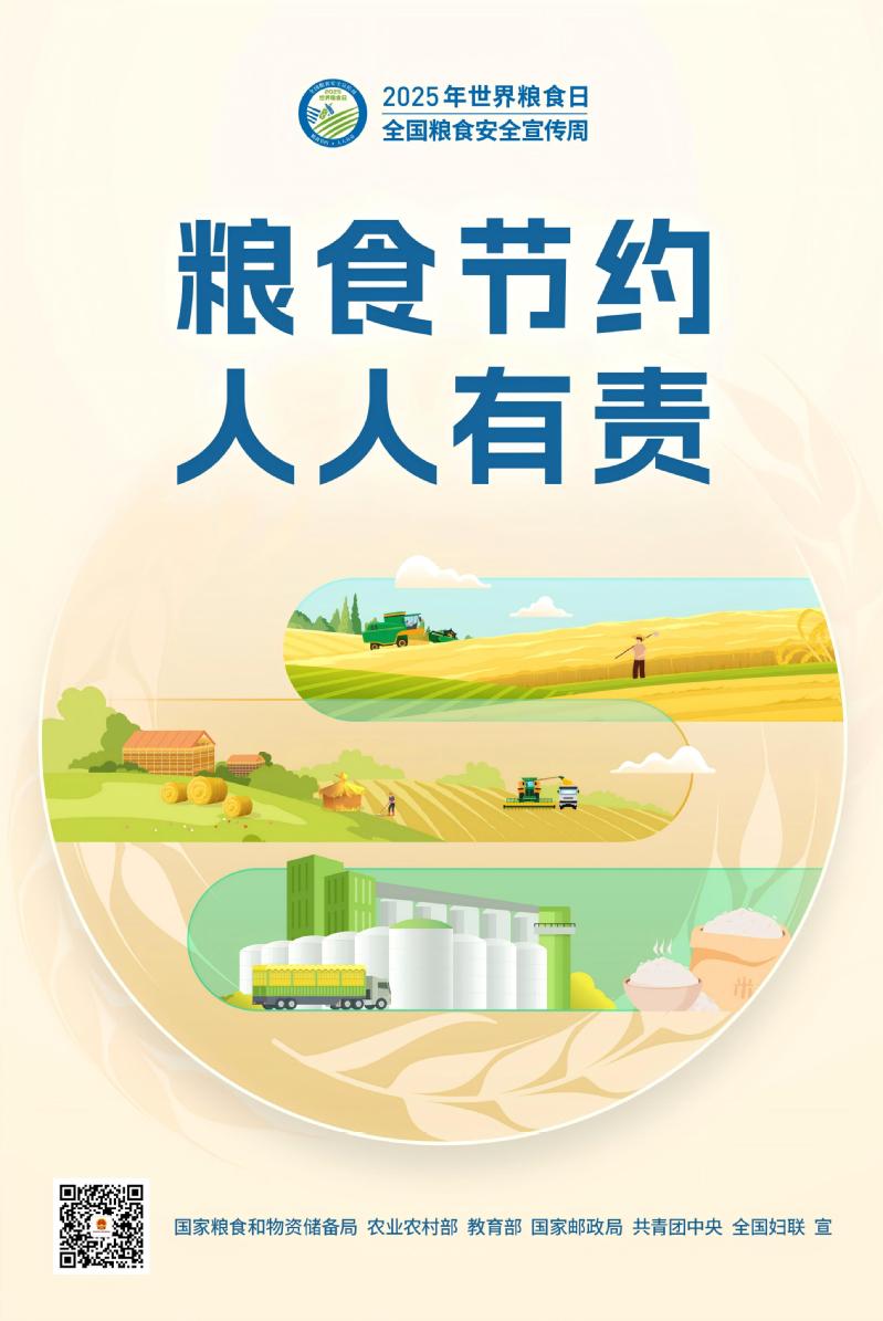2025年10月16日是第45个世界粮食日,本周是全国粮食安全宣传周,主题为:粮食节约 人人有责。让我们携手爱粮惜粮、反对浪费,共同保障国家粮食安全。(国家粮食和物资储备局、农业农村部、教育部、国家邮政局、共青团中央、全国妇联)