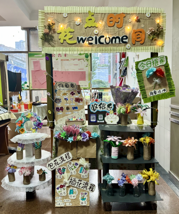 此次展览汇聚多组特色作品,品类丰富、特色鲜明。作品聚焦幼儿感官发展、社交能力培养等核心目标,从幼儿兴趣出发提炼创作灵感,各组创意让人眼前一亮。角色游戏区域的环境创设尤为生动:一家家围绕“花朵”主题经营的“花点时间”“花田小筑”“花来时”小铺摆放着以纸、粘土、毛根等多种材料制作的各种精美花束,形态逼真,让人爱不释手。