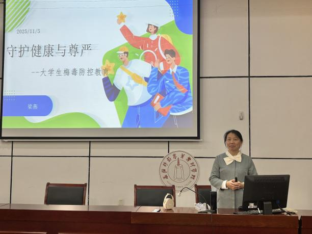 为提高学生对传染病的防范意识,树立正确的健康观念,11月5日,梁燕教授为我院学生带来了一场题为“守护健康与尊严——大学生梅毒防空教育”的专题讲座。讲座现场座无虚席,气氛热烈。