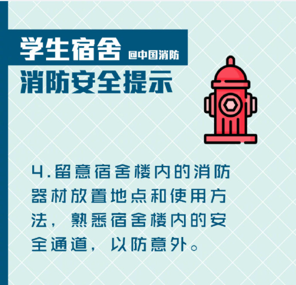 宿舍是学生在校的”家“,大家要一起努力,注意消防安全,让火灾远离校园!